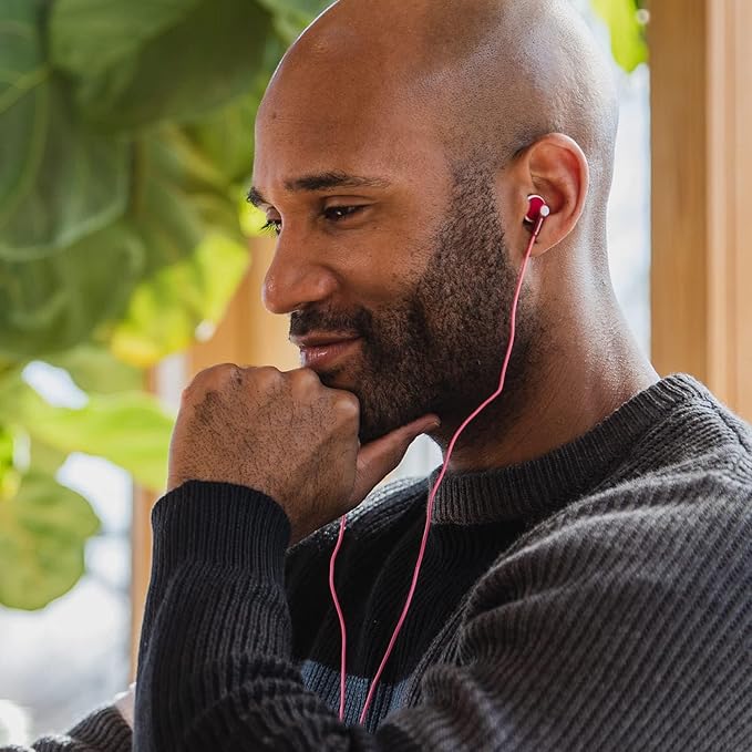 Panasonic ErgoFit Wired Earbuds, 3.5mm Jack In-Ear Headphones Wired with Dynamic Crystal-Clear Sound and Ultra Soft Ergonomic Custom-Fit Earpieces (S/M/L), for Phones and Laptops - RP-HJE120-P (Pink)