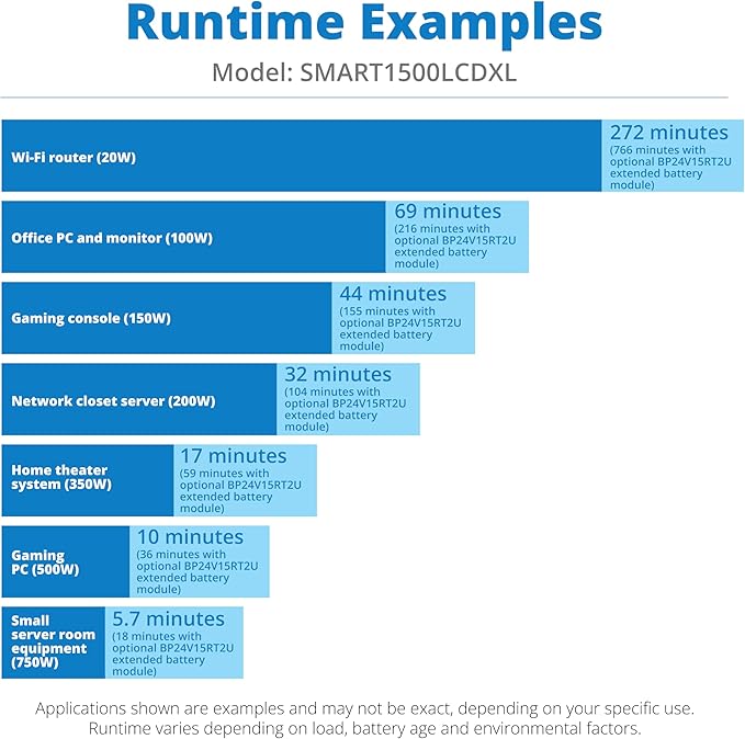 - EXTEND RUNTIME WITH EXTERNAL BATTERY PACK: Optional Eaton Tripp Lite BP24V15RT2U external battery pack provides 30 minutes additional runtime at half load (450W) and 11 minutes at full load (900W). External battery pack mounts in 2U rack space.