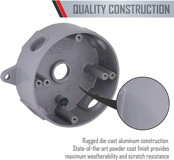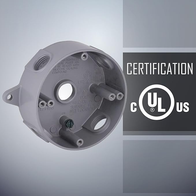 TayMac RB550S Weatherproof Box, Round - (5) 1/2-Inch Outlets, Gray