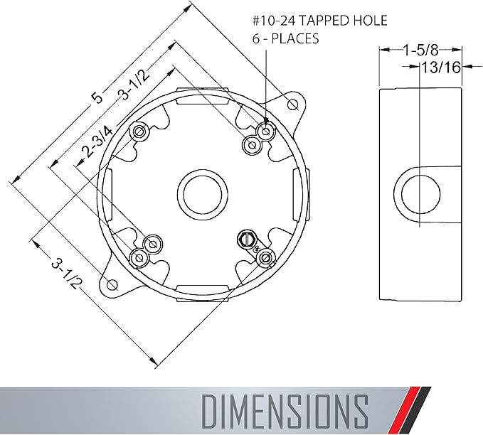 - Closure plugs, mounting hardware, installation instructions, and ground screw included