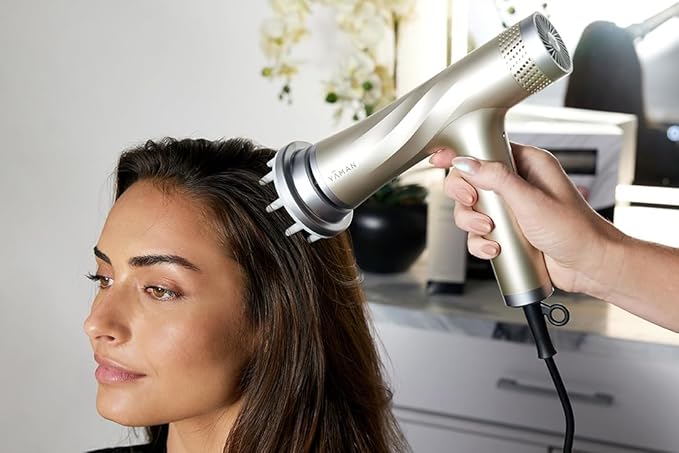 - RED LIGHT THERAPY - Incorporating cutting-edge red light and infrared technology, this blow dryer not only efficiently dries your hair but also stimulates your scalp, aiding in moisture retention by gently heating both from the inside and out.