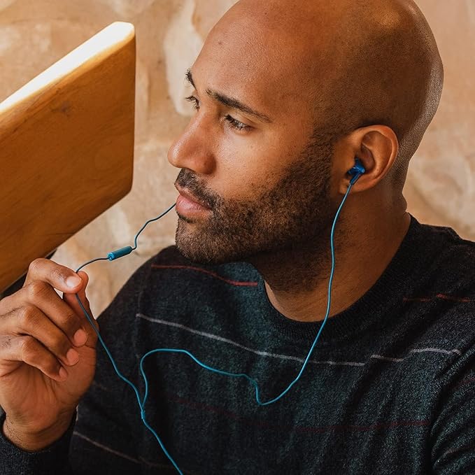 Panasonic ErgoFit Wired Earbuds With Microphone, 3.5mm Jack Wired Headphones with Mic and Call Controller, Ergonomic Custom-Fit Earpieces (S/M/L), for Phones and Laptops - RP-TCM125-A (Blue)