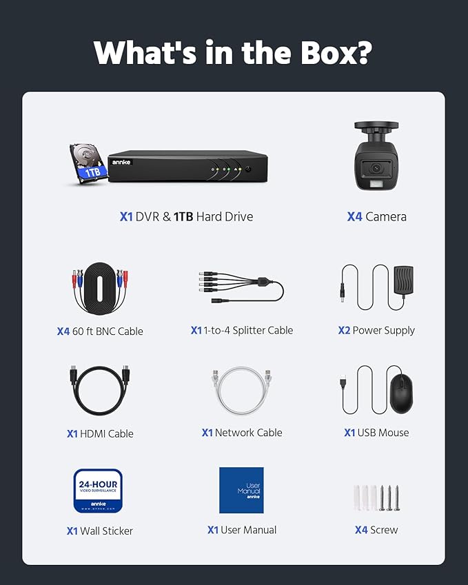 - 【Reliable 24/7 Continuous Recording】With a NEW surveillance grade pre-installed 1TB HDD(Support up to 10TB HDD), providing 24/7 surveillance recording for you. Upgraded H.265+ saves more storage space and uses less bandwidth, recording videos longer and smoother viewing.