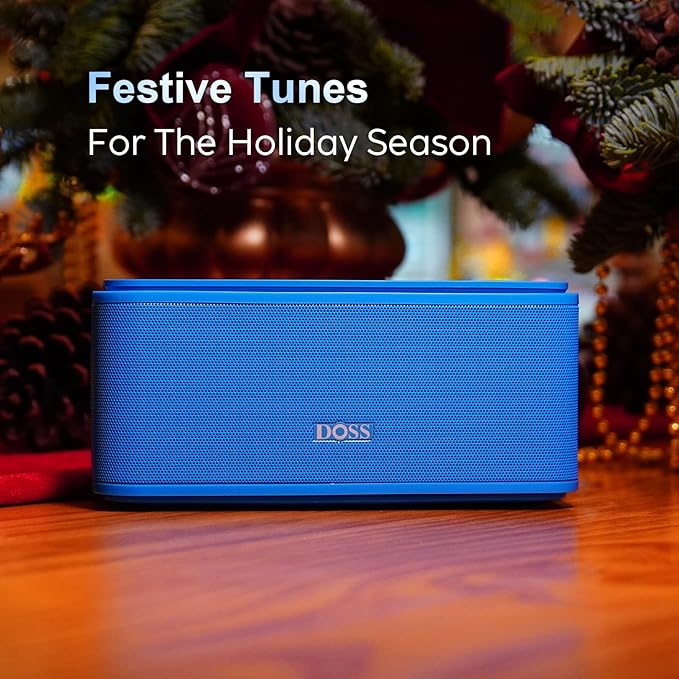 DOSS SoundBox Touch Wireless Bluetooth Speaker with 12W HD Sound and Bass, IPX5 Water-Resistant, 20H Playtime, Handsfree, Portable for Office, Home, Outdoor, Travel-Blue