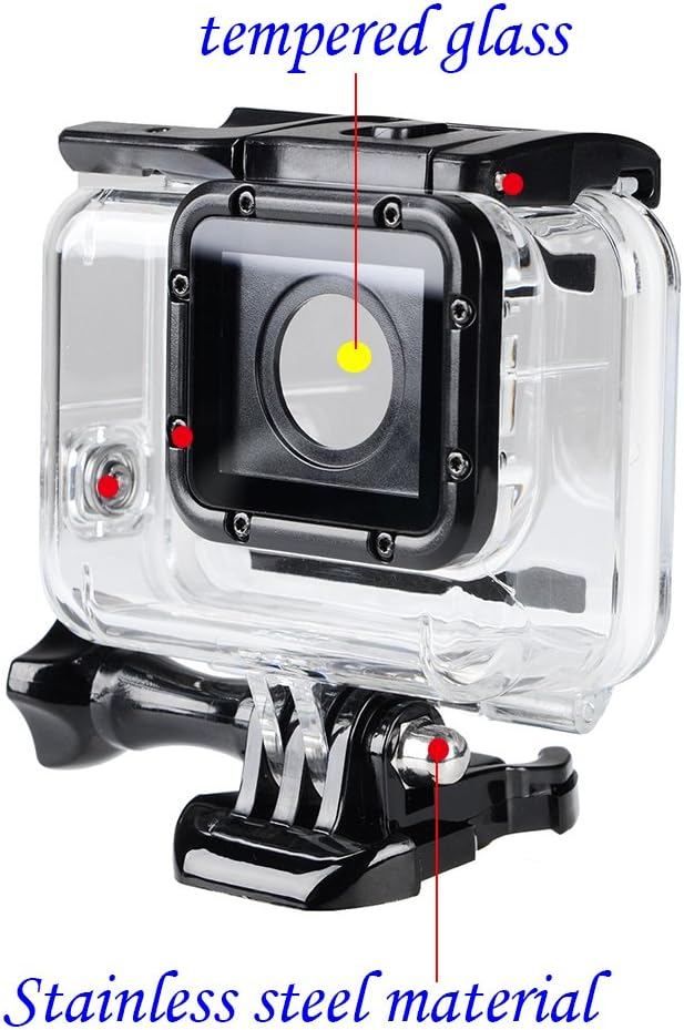 - EXTRA PROTECTION: The housing does not only offer greater waterproof protection to your GoPro hero 5/ Hero 6/ Hero 7 black/ Hero 2018 action camera, it also offers extra protection against dust, scratches and shocks. Note:You need removed the quadrilateral glass mirror on the camera. And then put the camera into the waterproof case