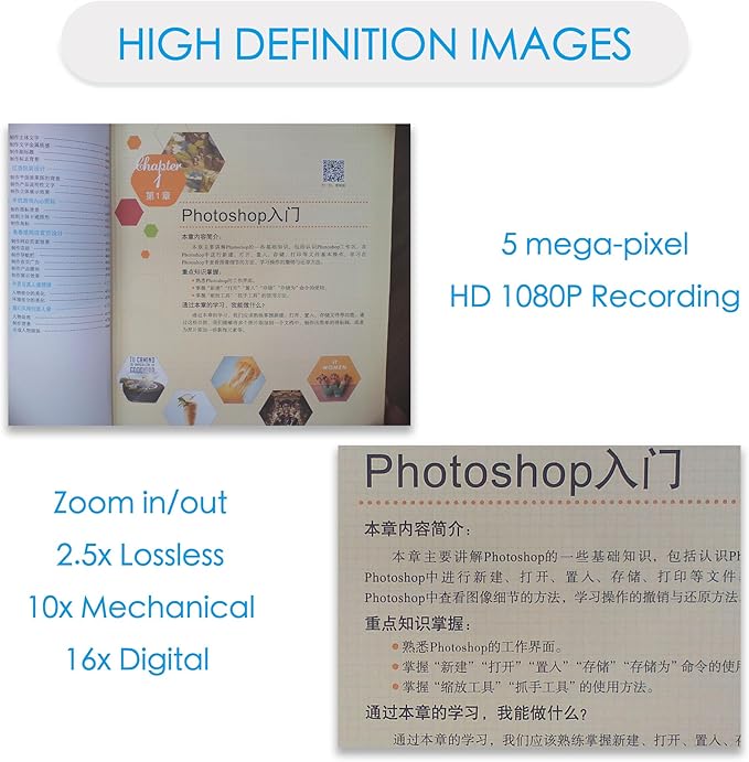 - High Definition Images: 5MP photographing and full HD 1080P audio video recording; 30fps ultra smooth video performance; 2.5x lossless, 16x digital and 10x mechanical zoom in/out; One-touch fast auto focus, the images and text can still keep clear even in multiple-amplification.
