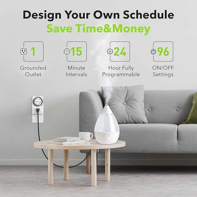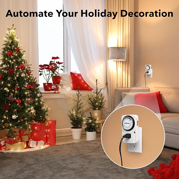 - ✓ AUTOMATE YOUR HOME OR OFFICE: Turn on and off lamps, small appliances, Christmas trees, and other electrical devices with a handy 24 hour lamp timers for electrical outlets.