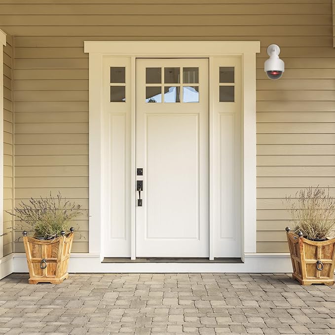 - Design: Made of high quality and durable material. Compact design and easy to install. Appear to work as an actual security camera.