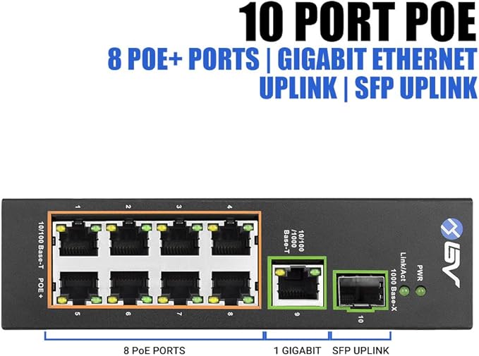 - Seamless Power Distribution: Power and manage IP cameras, VoIP phones, and wireless access points with ease using the BV-Tech 8 Port PoE Switch. No additional cables or outlets required.
