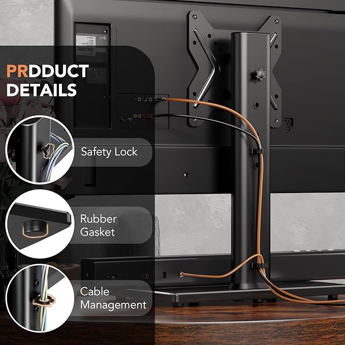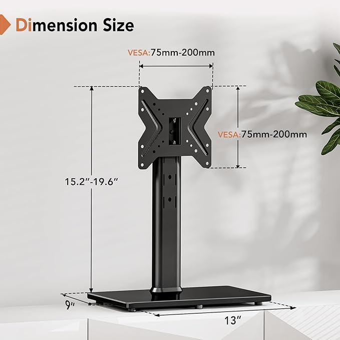- ❤ STABILITY AND MANY APPLICATIONS UNIVERSAL TV STAND ☞ Designed with a heavy duty steel elliptical panel and 8mm tempered glass base, my stability free standing TV mount can easily hold your TV on your table with safety and stability, besides my universal table top TV stand easily fits 19 to 43 inch TVs with VESA pattern from 75mmx75mm to 200mmx200mm, holds up to 99Lbs, The universal tv legs are compatible with Amazon fire /Sony/Samsung/Vizio/Sharp/Insignia/TCL/Hisense/Toshiiba/Emerson/Sanyo/philips/Supersonic/LG/RCA/Roku TVs and so on