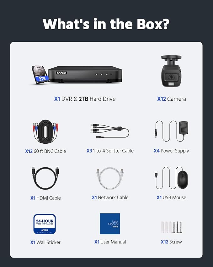 ANNKE 16 Channel Security Camera System HD-TVI 1080P Lite Video DVR and (12) 2.0MP Outdoor IP67 Cameras with Smart Dual Light, AI Human/Vehicle Detection, Color Night Vision, 2 TB Hard Drive