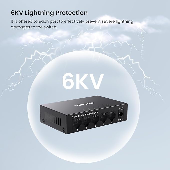 - ๐๐ข๐ ๐ก๐ญ๐ง๐ข๐ง๐ ๐๐ซ๐จ๐ญ๐๐๐ญ๐ข๐จ๐ง: Equipped with 6KV lightning protection on all ports, this switch safeguards against power spikes and induction currents, ensuring stable and secure operation
