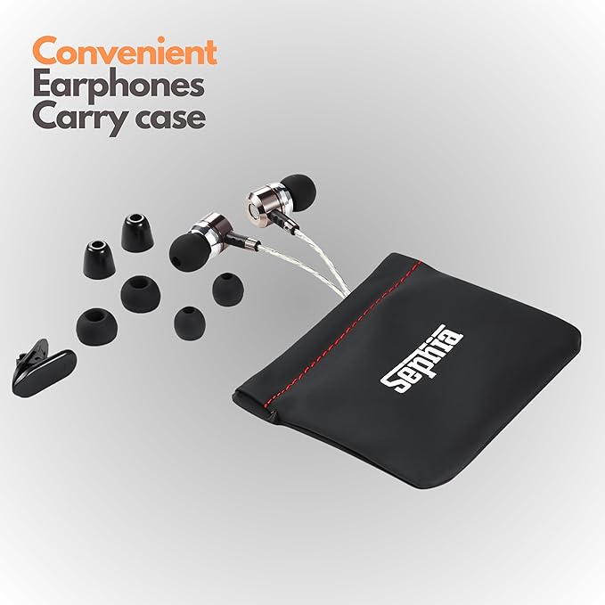 Sephia SP3060VC Wired Earbuds with Microphone, Deep Bass in-Ear Headphones with Noise Isolation, 10mm Drivers, Tangle-Free Cable, 3.5mm Jack