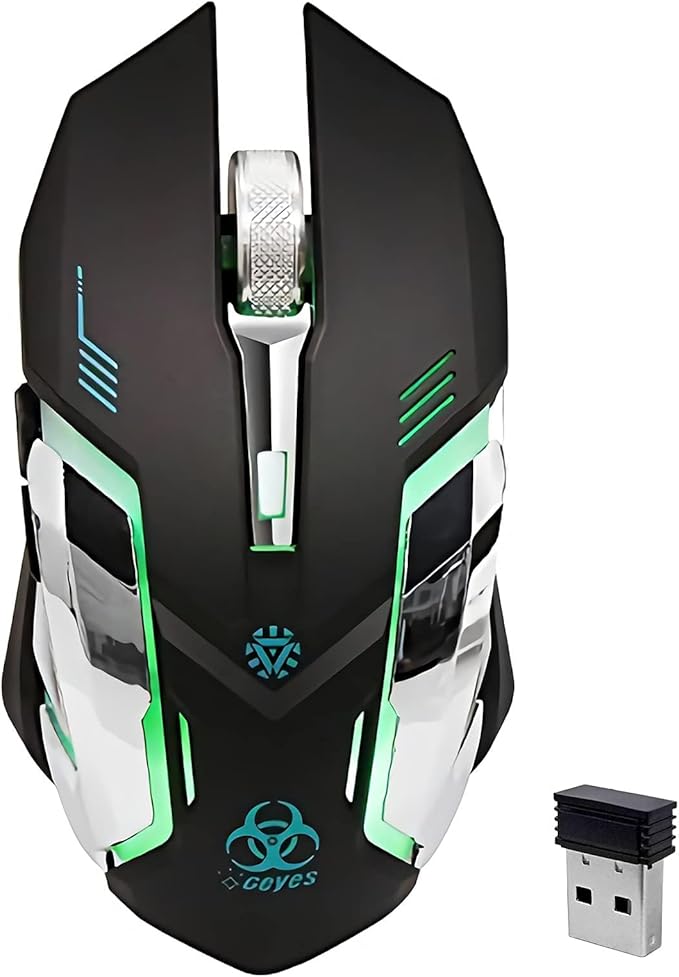 VEGCOO Wireless Gaming Mouse, Silent Wireless Mouse, Rechargeable Computer Mice with Colorful RGB LED Lights and 3-Level-Adjustable DPI, 6 Buttons Mouse with Side Buttons for Laptop and Desktop