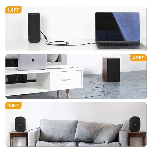 - [1.6 Feet Short RCA to 1/8 Stereo Cable]: 3.5mm to 2RCA Audio Y Cable is compatible with Echo Dot, iPhone, iPod, iPad, tablets including Nexus, MP3 players, CD players, laptops, tablets and any other device with a 3.5mm audio jack; and home sound systems, like amplifier or stereo receiver with RCA (RCA white/left and red/right sockets) jacks for audio inputs