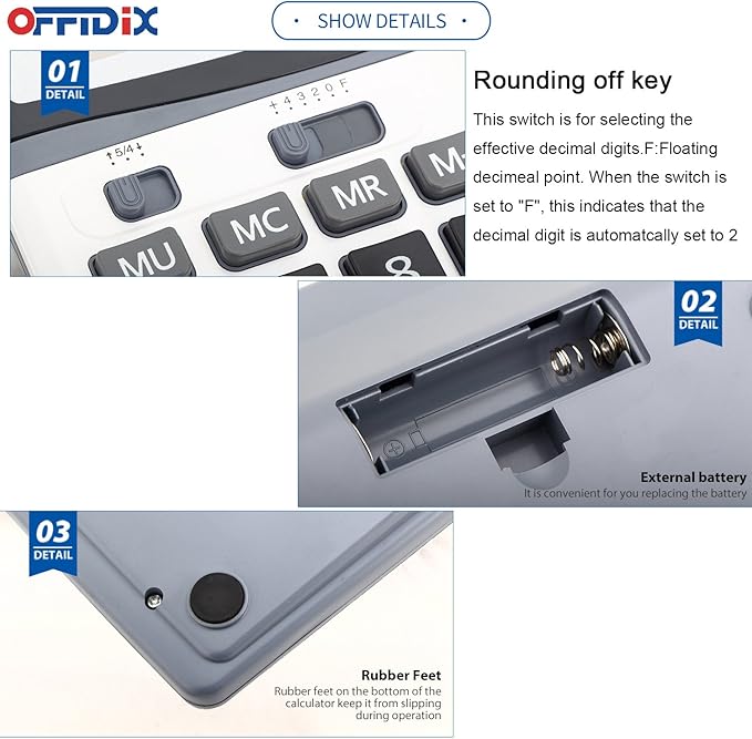 OFFIDIX Large Key Dual Power Electronic Calculator, Portable 12 Digit Large LCD Display Desk Calculator for Daily and Basic Office