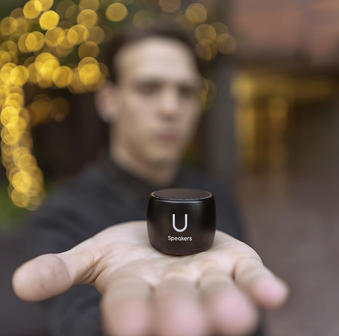 Fashionit U Micro - Small Bluetooth Speaker | Coin-Sized Speakers Bluetooth Wireless with Built-in Mic & Remote Shutter | Portable Rich Sound for Travel, Shower, Beach | Black