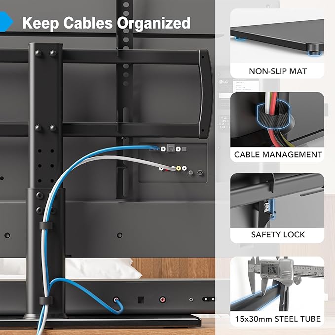 - FUNCTIONAL TV STAND WITH HEIGHT ADJUSTABLE AND CABLE MANAGEMENT β My functional TV mount have 4 level height adjustment in order to choose your best space, besides integrated cable pass through port and collect the messy cables allows you to tidy your room clean