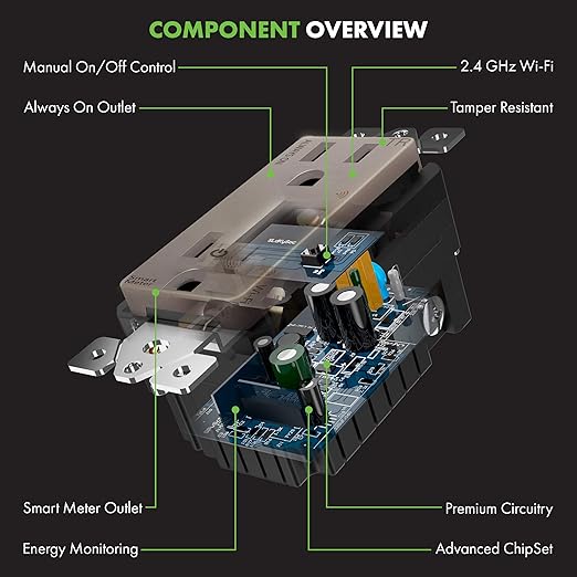 - Bottom outlet is Wi-Fi and Smart Meter enabled; the top outlet is always on for appliances that always need power