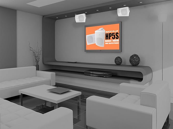 Rockville Pair HP5S-8 420W 5.25" Outdoor/Indoor Home Theater Speakers, 8 Ohm, IPX44 Water-Resistant, Swivel Brackets, High-Fidelity Sound, for Patio and Home Audio