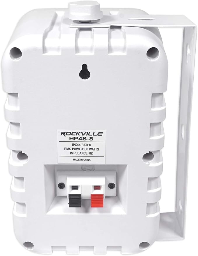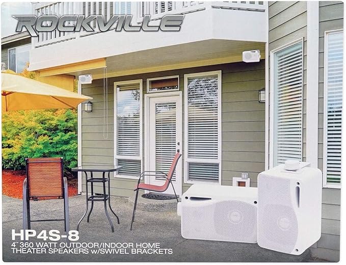 Rockville Pair HP4S-8 4-Inch 360W Outdoor/Indoor Speakers, 8 Ohm, IPX44 Weather-Resistant, Swivel Brackets, Removable Paintable Grills, for Home Theater and Patio