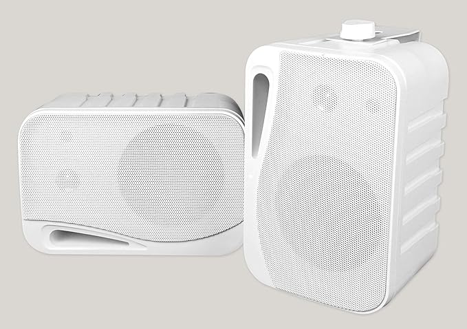 - WEATHER-RESISTANT DESIGN FOR ALL ENVIRONMENTS: IPX44-rated speakers withstand rain, snow, and wind, ideal for patios, decks, or indoor setups. Durable ABS construction ensures long-lasting performance in any setting.