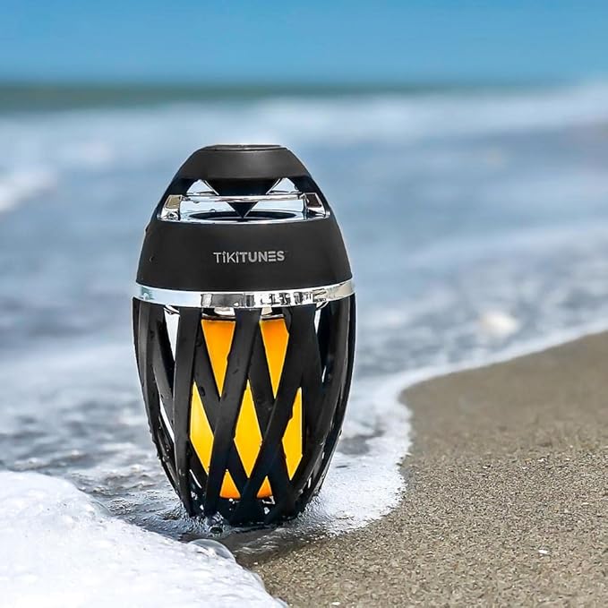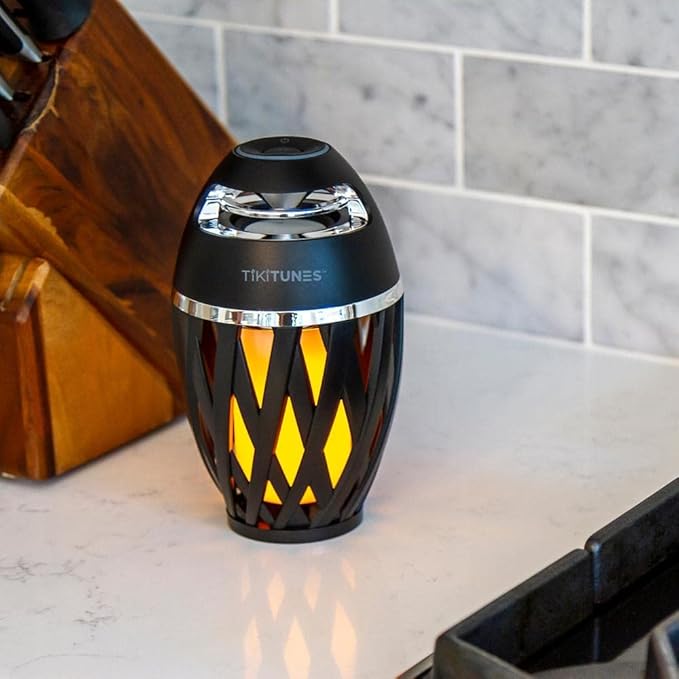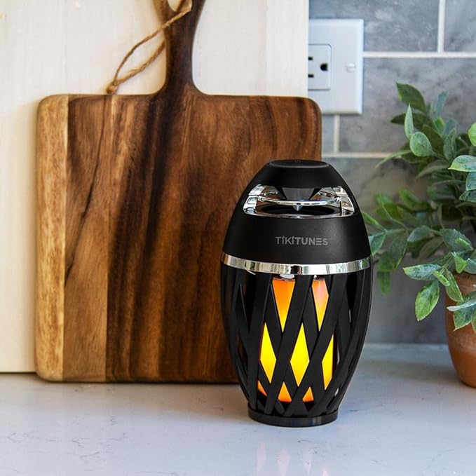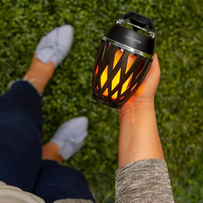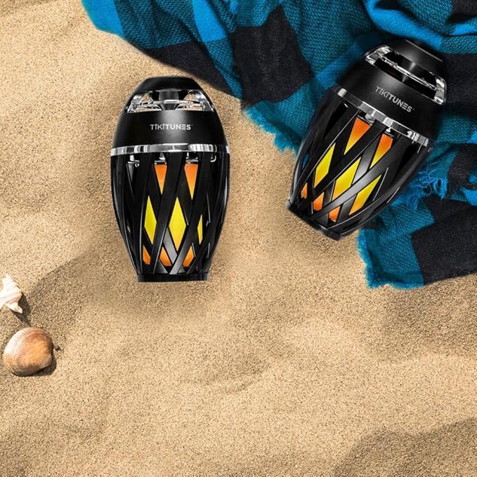 TikiTunes Portable Bluetooth 5.0 Indoor/Outdoor Wireless Speakers, LED Torch Atmospheric Lighting Effect, 5-Watt Audio USB Speakers, 2000 mAh Battery for iPhone/iPad/Android (Set of 2)
