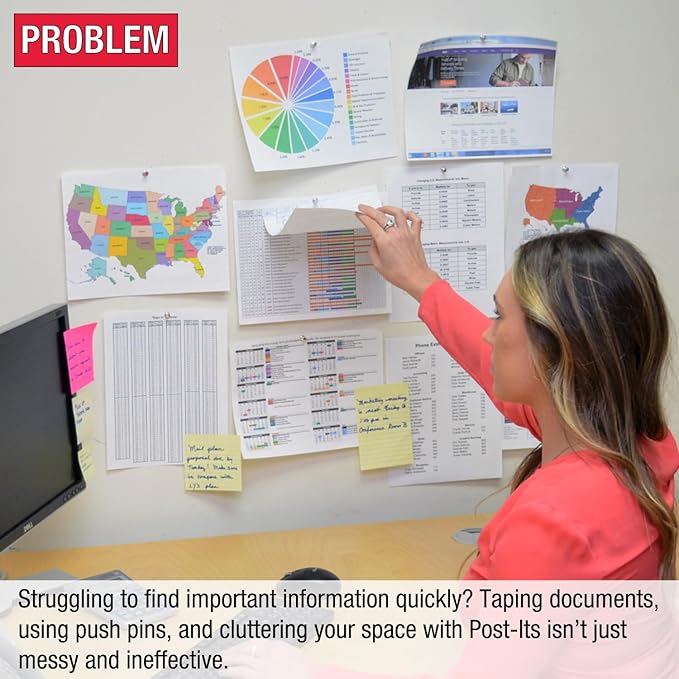 - NO TACKS, NO TAPE, NO MESS! - AdjustaView Wall Organizer eliminates unsightly Post-Its and documents tacked or taped to your walls. Wall organizer measures 19 1/4"w x 12 3/4"h x 5 1/2"d.