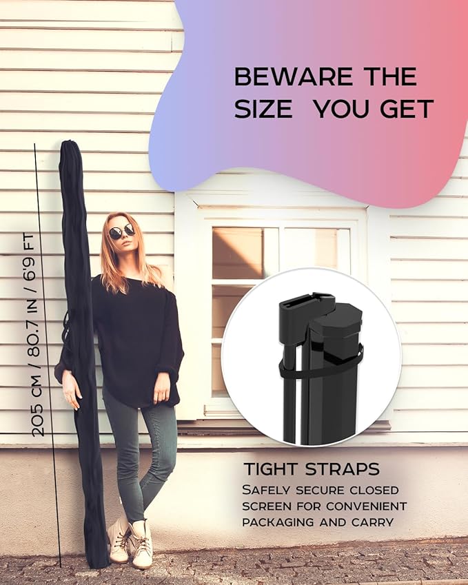 - Indoor Outdoor projection movie screen is secured by convenient tight-straps, it could be carried to backyard or auditorium in a perfectly fitted projector screen bag, its retractable and adjustable design can be easily assembled in 3 steps