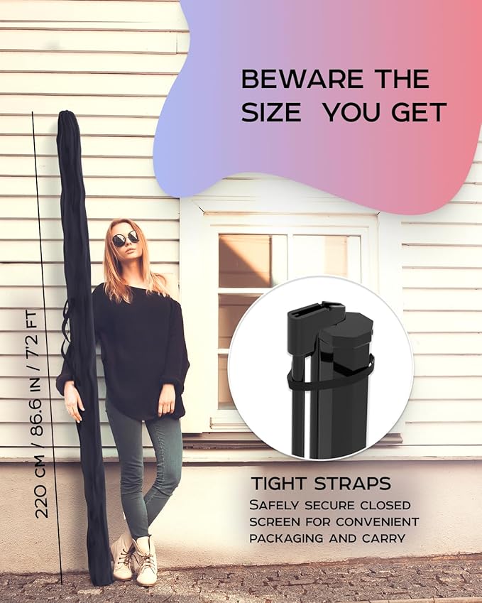 - Indoor Outdoor projection movie screen is secured by convenient tight-straps, it could be carried to backyard or auditorium in a perfectly fitted projector screen bag, its retractable and adjustable design can be easily assembled in 3 steps