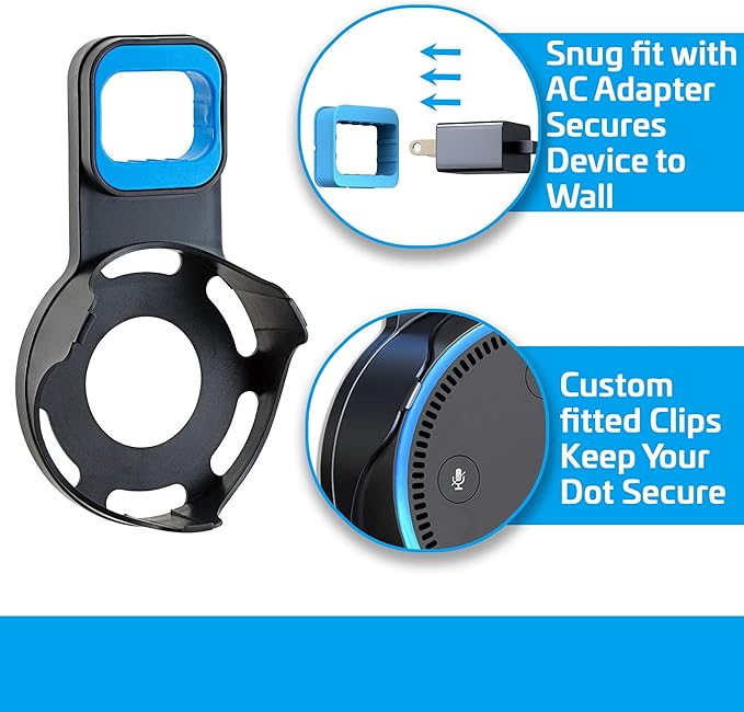 Coby Speaker Wall Mount Compatible with 2nd-Generation Alexa Echo Dot, Device Charging Dock and Storage Station, Cable Management Bracket for Wall Outlet, 7.5-Inch USB Charging Cord Included, Black