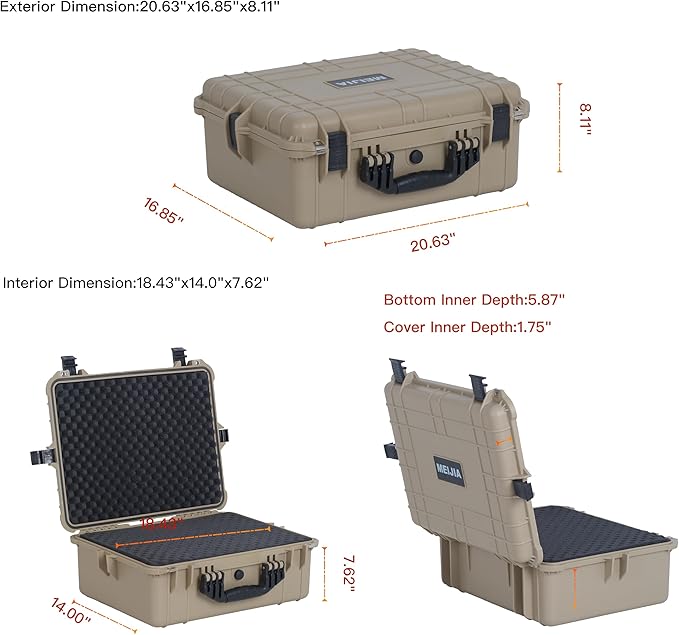 MEIJIA Portable All Weather Waterproof Protective Hard Case,Compact Camera Case with Customizable Fit Foam,Fit Use of Drones,Camera,Equipments, 20.62 x16.85x8.11inches(Desert Tan)