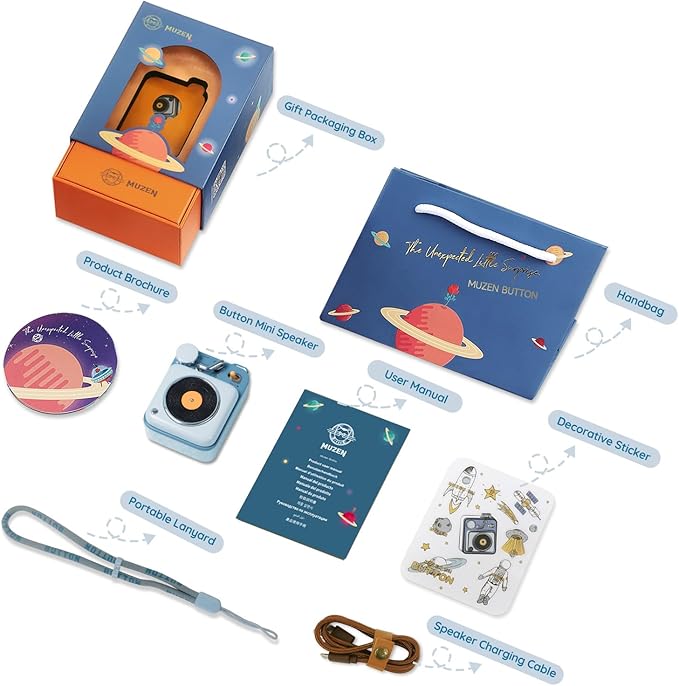 - 【Excellent Stereo Sound】MUZEN Button is a compact small speaker that delivers spacious audio despites its palm-sized frame. Its 70dB SNR and 3W amplifiers produce crisp, distortion-free HiFi sound, proving that great music can come in small packages and fancy appearance