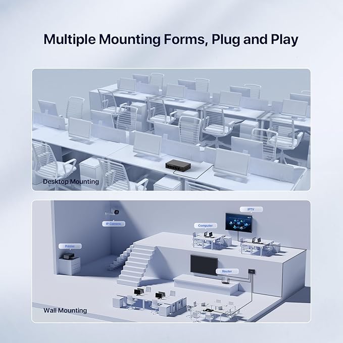 - ๐๐ฎ๐ฅ๐ญ๐ข๐ฉ๐ฅ๐ ๐๐จ๐ฎ๐ง๐ญ๐ข๐ง๐ ๐๐ฉ๐ญ๐ข๐จ๐ง๐ฌ: Designed for versatility, this network hub offers both desktop and wall-mount options, allowing for efficient space management and tailored installations
