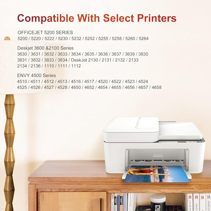 - Compatible Devices : For Deskjet 3600 Series: 3630, 3631, 3632, 3633, 3634, 3635, 3636, 3637, 3639, 3830, 3831, 3832, 3833, 3834, DeskJet 1110, 1111, 1112; OfficeJet 5200 Series: 5200, 5255, 5258, 4650, 4652, 4654, 4655, 4656, 4657, 4658; ENVY 4500 Series: 4510, 4511, 4512, 4513, 4516, 4517, 4520, 4522, 4523, 4524, 4525, 4526, 4527, 4528; Deskjet 2100 Series: 2130, 2131, 2132, 2133, 2134, 2136 For Deskjet 3600 Series: 3630, 3631, 3632, 3633, 3634, 3635, 3636, 3637, 3639, 3830, 3831, 3832, 3833, 3834, DeskJet 1110, 1111, 1112; OfficeJet 5200 Series: 5200, 5255, 5258, 4650, 4652, 4654, 4655, 4656, 4657, 4658; E⦠See more