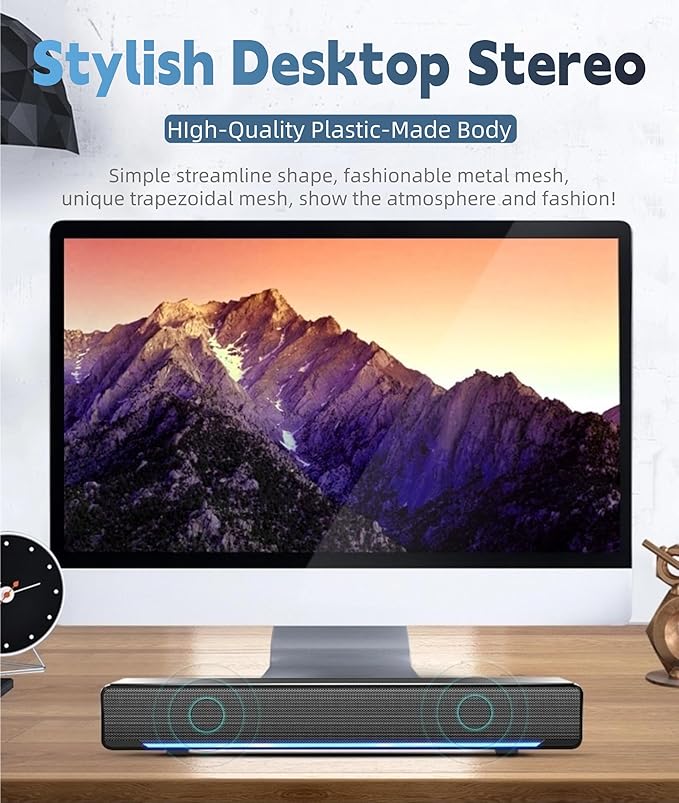 Soundbar,USB Wired SoundBar,Music Player with Bass Surround,Stereo USB Powered Mini Soundbar Speakers with 3.5mm Input for PC Tablets Laptop Desktop Projector Cellphone for Home Theater(Black)