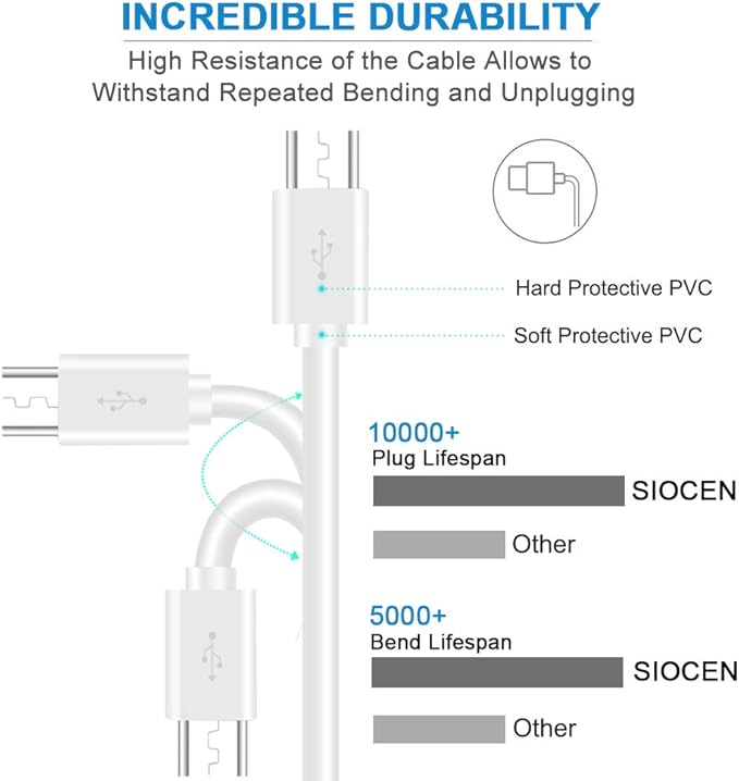 SIOCEN 3 Pack 16.4FT Micro USB Power Extension Cable for Wyze Cam V3,WyzeCam Pan,Yi Camera,Oculus Go,Eufy,Echo Dot Kid Edition,Nest Cam,Netvue,Blink,Furbo Dog,Kasa,Home Security Camera Charging Cord