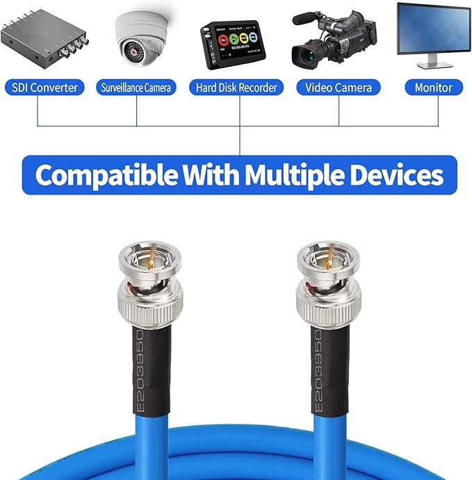 - Is suitable for HDTV and professional SDI applications: Supports HD-SDI, 3G-SDI, component, composite, MADI, WORD CLOCK, SYNC, etc.This shielded coaxial cable is compatible with a wide variety of popular software, including Blackmagic, AJA, Grass Valley, Evertz, Marshall, Cobalt Digital, Atomos, Postium, AVID, and Decimator. Our HD-SDI cable is great for use in HD-serial digital video transfer,HDTV upgrades, broadband facilities, and other applications with HD-SDI video.