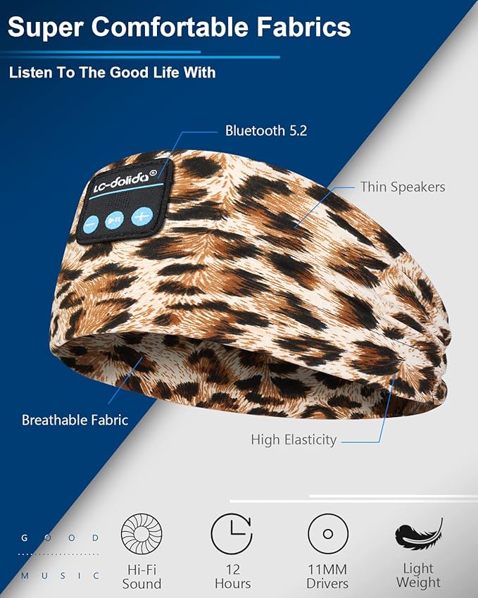 - 【Comfortable & Stylish Bluetooth 】LC-dolida Stylish Pattern design sleep headphone Bluetooth sport is made of high quality textile materials. It is cool and soft, quick drying sport music makes you feel comfortable after sweating exercise.The headphones is the perfect Sleeping Headphones for side sleepers, chose our sleeping bluetooth headphones, fall asleep fast,have a sweet dream