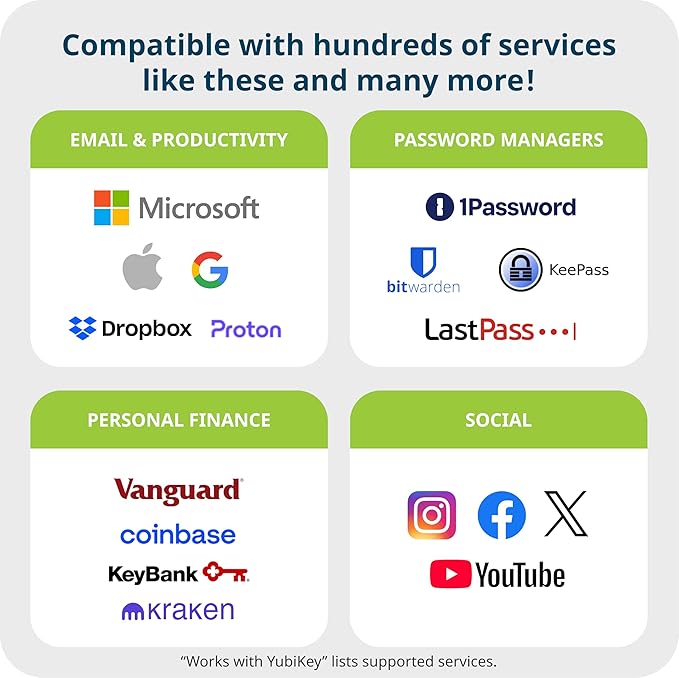 - FIDO: YubiKey 5Ci is FIDO-certified and supports Google Chrome and any other FIDO compatible application on Windows, Mac OS or Linux. Protect your login credentials and protect your Gmail, Facebook, Dropbox, Outlook, LastPass, Dashlane accounts and many more.