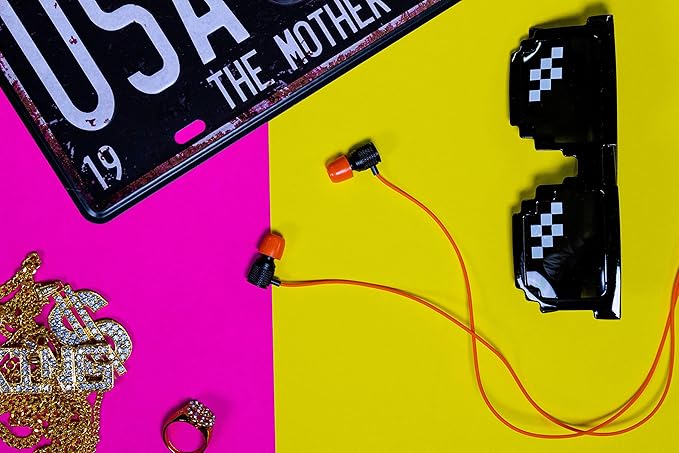 LUDOS Ultra Wired Earbuds in-Ear Headphones, 5 Years Warranty, Earphones with Microphone, Noise Isolating Ear Buds, Memory Foam for iPhone, Samsung, School Students, Kids, Women, Small Ears - Orange
