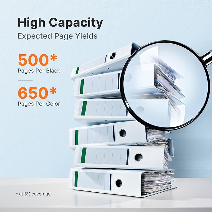 - Page Yield: 500 pages per 410XL black ink cartridges, 650 pages per 410XL Cyan Magenta Yellow Photo Black ink cartridge (5% coverage)
