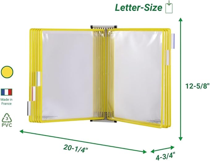 Tarifold DJOIS Wall Mount Reference System – 10 Double-Sided Display Pockets – Letter Size – Steel Wire Frame – Adjustable Tabs – Made in France - Yellow (W241)