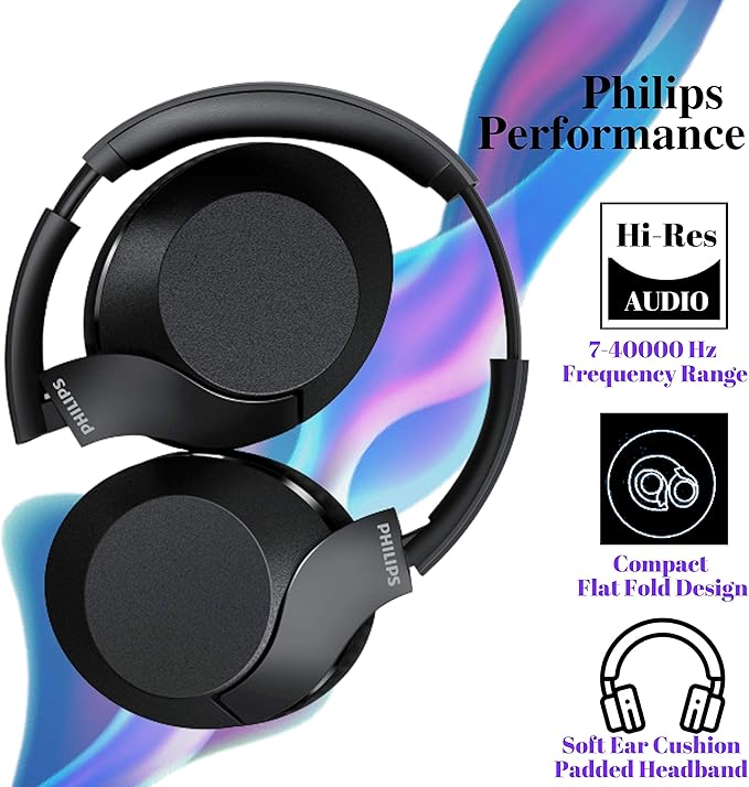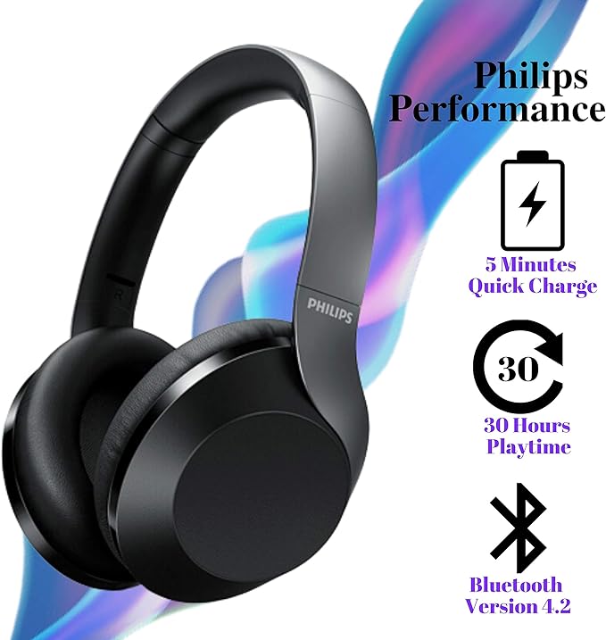 Philips PH802 Wireless Bluetooth Over-Ear Headphones Noise Isolation Stereo with Hi-Res Audio, up to 30 Hours Playtime with Rapid Charge (TAPH802BK)