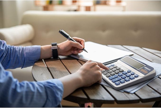 Desktop Calculator Extra Large 5-Inch LCD Display 12-Digit Big Number Accounting Calculator with Giant Response Button, Battery & Solar Powered, Perfect for Office Business Home Daily Use(6815-2pcs)