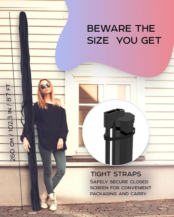 - Indoor Outdoor projection movie screen is secured by convenient tight-straps, it could be carried to backyard or auditorium in a perfectly fitted projector screen bag, its retractable and adjustable design can be easily assembled in 3 steps