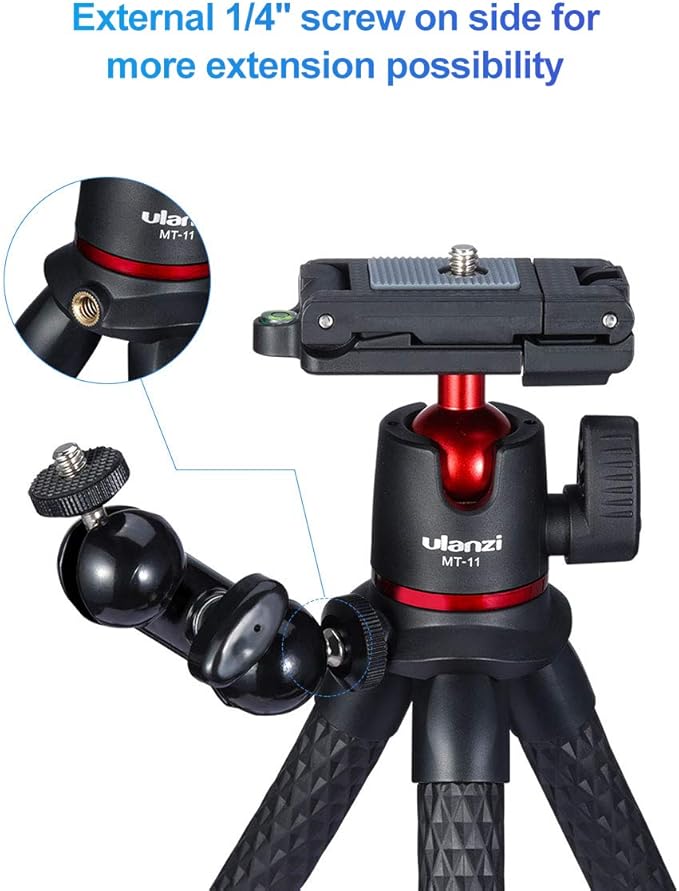 - 1/4 Thread for Extension: The camera flexible tripod has a 1/4β thread, allows you to mount a minotor magic arm(not included)