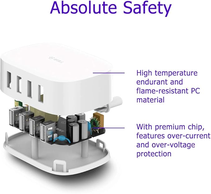 - 【Safety First】UL listed, FCC, DOE6 certificated, high temperature endurant, flame-resistant, the PC material shell eliminates any worries about overcurrent, overvoltage, combustion, and devices will not be overheat. High quality ensures long-term durability.