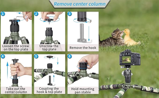 - 【EXCLUSIVE MID-COLUMN】You can remove or invert the mid-column to get a low position for camera, so that it can realize the lowest angling shooting, macro shooting, or other special photography.