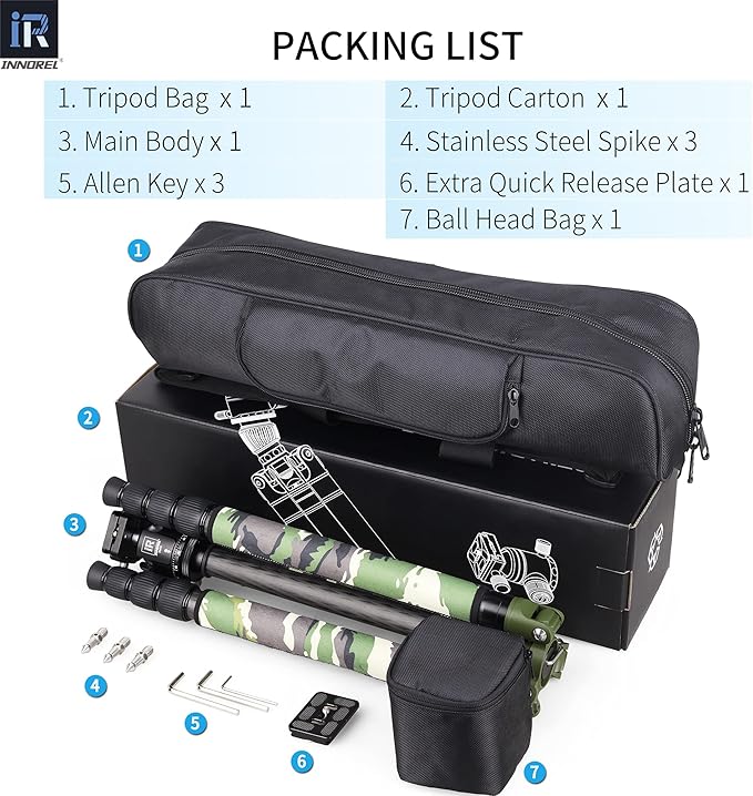 - 【LIGHT & ROBUST】This tripod is made of metal and 10 layers carbon fiber with CNC technology and anodic oxidation, which is lightweight, robust and for long-lasting working or playing sessions.